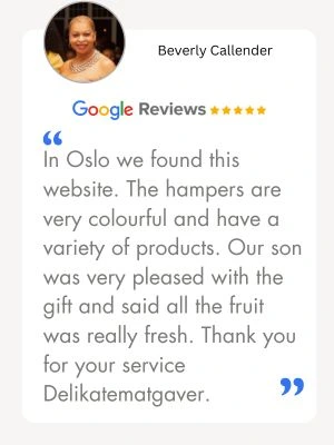 Whether the recipient lives in Oslo, Bergen, or a small village, we ensure your food gift arrives on time and in perfect condition anywhere in Norway. With our nationwide delivery service, it’s easy to send a personal gesture of appreciation to someone you care about. Read our terms and delivery details here.